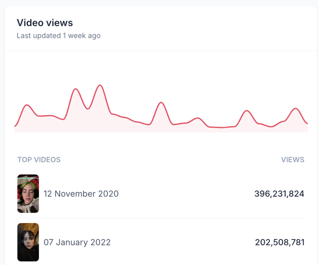 At the bottom, you’ll find the profile’s most recent videos and their top-performing videos by engagement.