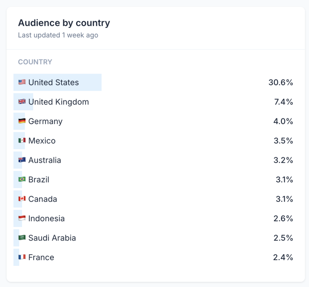 A table displaying where your audience comes from. This data is based on comments on your videos.