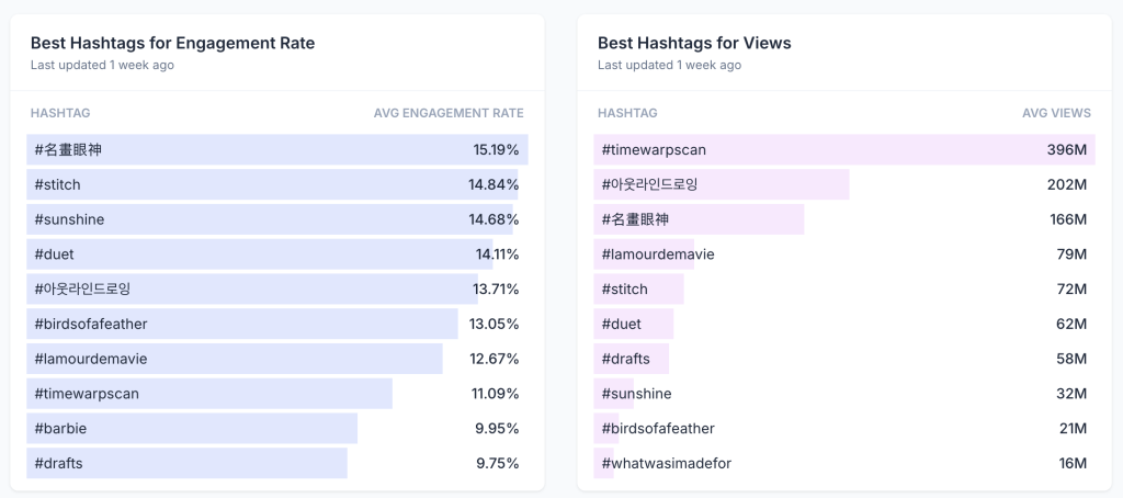 • Best Hashtags for Engagement Rate — Hashtags that generate the most interaction
