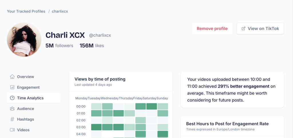 Your profile will now be added to your Tracked Profiles and you will be able to see your analytics. Please be aware data collecting might take up to a few minutes, so some widgets might not load instantly.