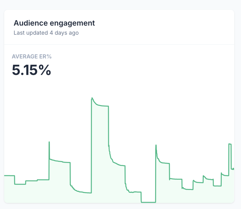 The Average ER% (engagement rate) shows how much interaction a profile’s videos receive relative to their follower count. A higher percentage means the audience is more engaged.